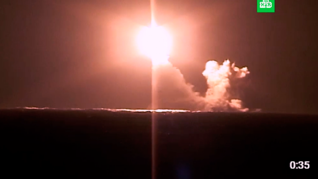 Данную установку называют «оружием судного дня». По информации российского оборонного ведомства, испытания прошли в Белом море. Во время пуска субмарина находилась под водой.