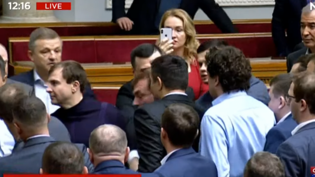 При этом в сессионном зале между парламентариями возникла ссора, в ходе которой депутат от ОПЗЖ Николай Скорик плечом толкнул нардепа Николая Тищенко. В то же время, представители фракции «Слуга народа» пытались успокоить Скорика, чтобы не допустить дальнейший драки.