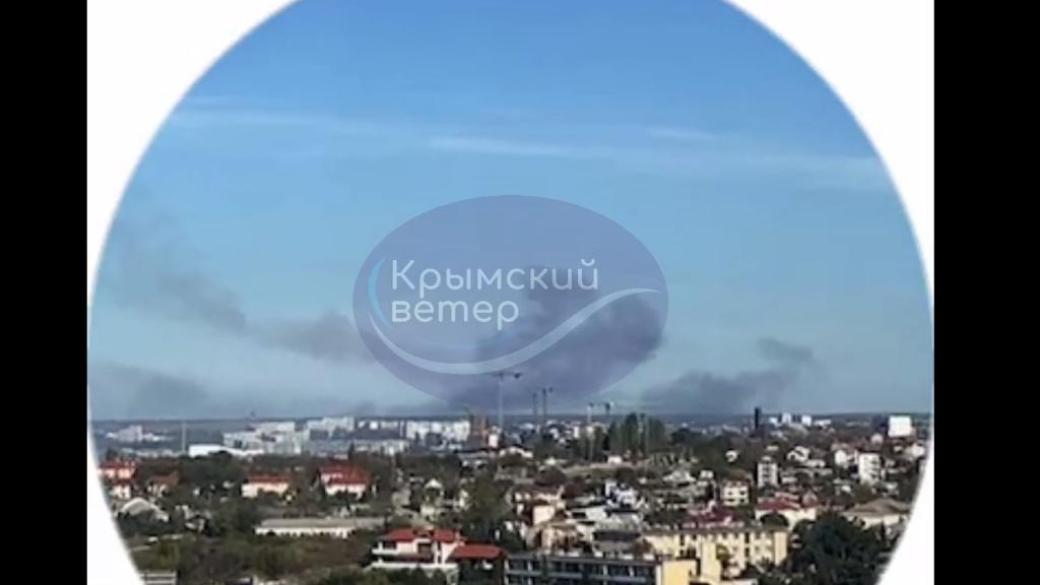 В Севастополе известно минимум о трех взрывах, после которых виднеется столб дыма над Севморзаводом и сильно дымит в районе Стрелецкой бухты.