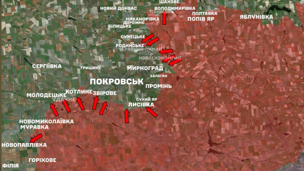 "Покровская агломерация - это не только сам Покровск, а соответственно Мирноград и Доброполье - крупные промышленные города. Сейчас оккупанты пытаются создать ряд так называемых малых котлов. Как вокруг Покровска, Мирнограда, так и пытаются удержать украинское контрнаступление на Добропольском направлении. То есть фактически говорится о нескольких участках фронта", - заявил он.