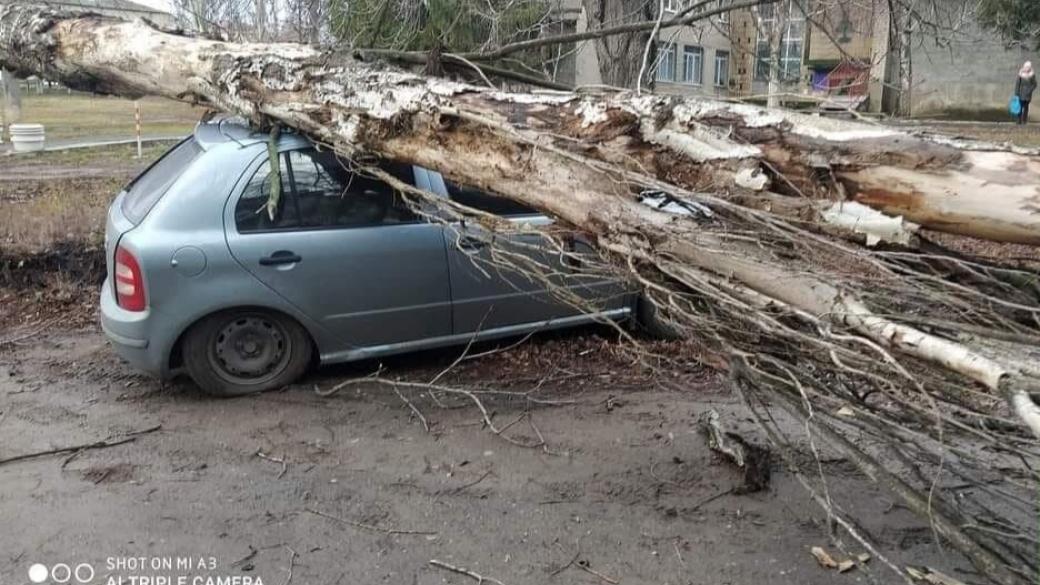 Ветер был настолько сильный, что повалил тополя прямо на припаркованные у домов автомобили.