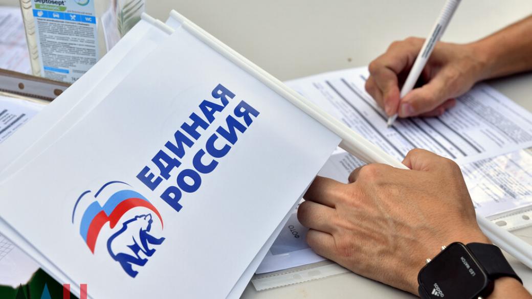 «Сегодня по поручению секретаря генерального совета партии „Единая Россия“ (Андрея Турчака) первые 100 жителей Донбасса — граждане России получили партийные билеты Всероссийской политической партии „Единая Россия“».