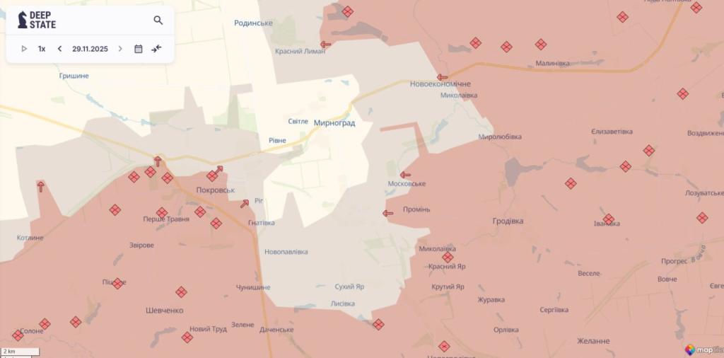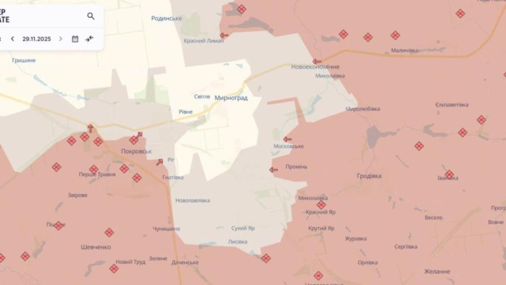 Украинские войска освободили Ивановку, а российские войска продвинулись вблизи Мирнограда в Донецкой области. Об этом сообщил аналитический проект DeepState.