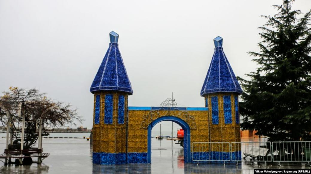 Издание Крым.Реалии. опубликовало фотографиями новогодней Ялты, которая несмотря на дождливую погоду все же готовится встретить новый год