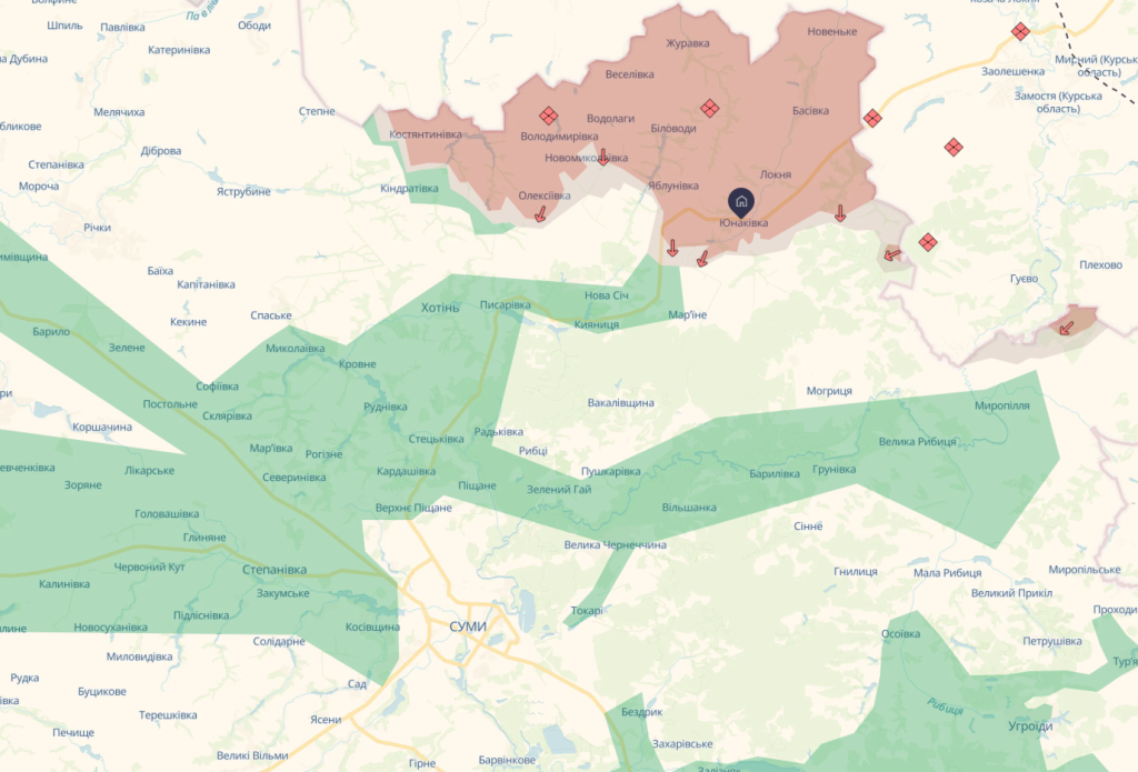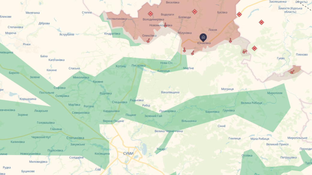 Войска рф продолжают попытки продвинуться на границе, пытаясь создать так называемую "буферную зону". Боевые действия продолжаются вблизи населенных пунктов Юнаковка, Андреевка, Яблоновка, Варачино и Кондратьевка. Об этом сообщает РБК-Украина со ссылкой на Центр коммуникаций группировки войск "Курск".