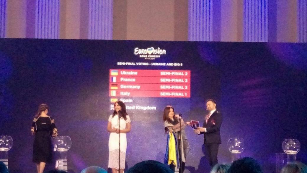 Отмечается, что жеребьевка была устроена таким образом, что Джамала выбирала методом слепого отбора страну-участницу, а Руслана — дату выступления полуфинала. Часть стран выступит в первом полуфинале, еще остальные — во втором.