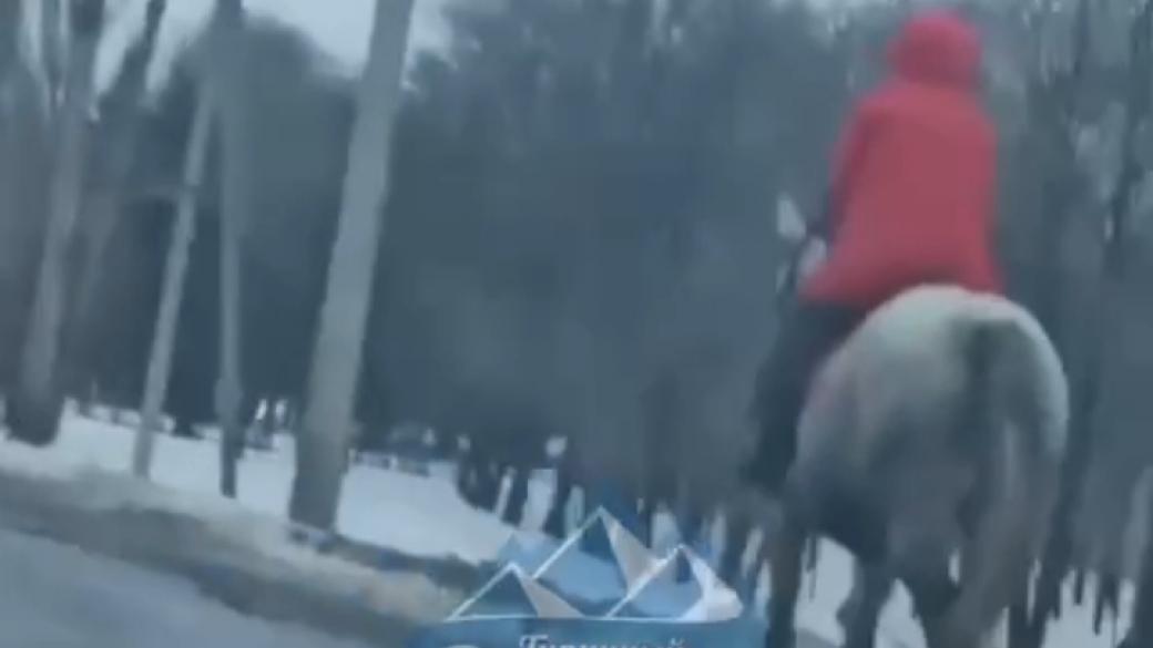 В пабликах ОРДО появилось видео из неподконтрольной Ясиноватой, на котором девушка скачет на лошади по дороге с микрорайона «Зорька» на Соцгородок.