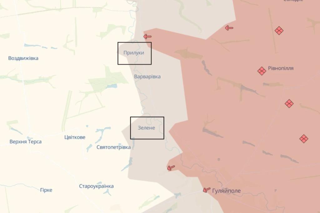 На Гуляйпольском направлении аналитики зафиксировали продвижение оккупантов возле населенных пунктов Прилуки и Зеленое.