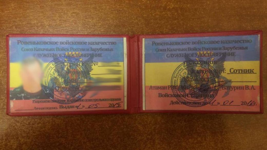 Кроме того, в личных вещах второго пассажира пограничники обнаружили «удостоверение» члена террористической группировки «Леший» и «Ровеньковского войскового казачества».Помимо этого было найдено одного из мужчин с просьбой о вступлении в ряды боевиков.
