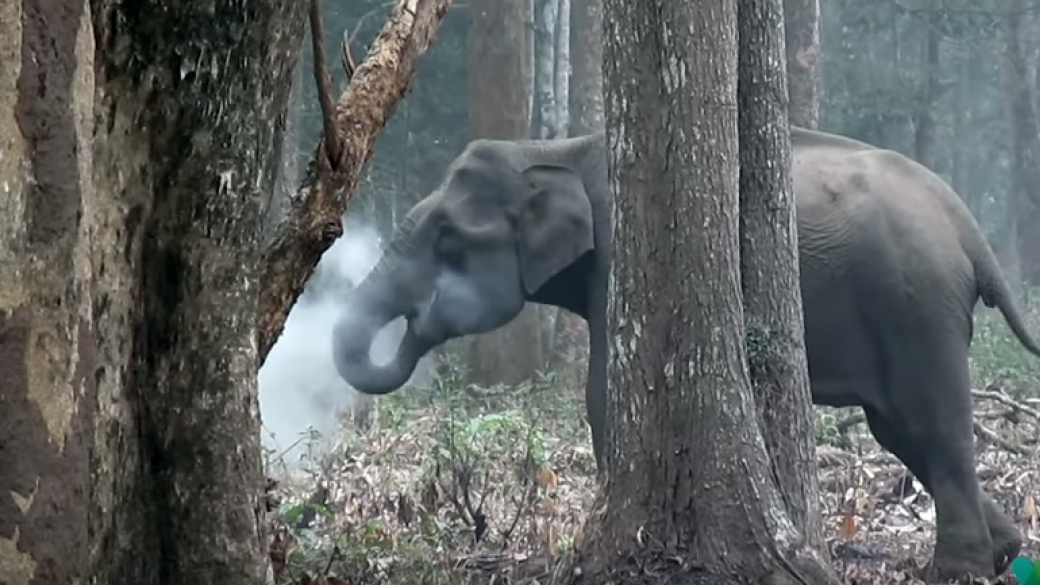 В ролике видно, что изо рта животного действительно вырываются бело-серые клубы. Заместитель директора Общества охраны природы Индии Винарий Кумар снял видеоролик в Национальном парке Нагарахол. Ученые заинтересовались таким нетипичным поведением слона.