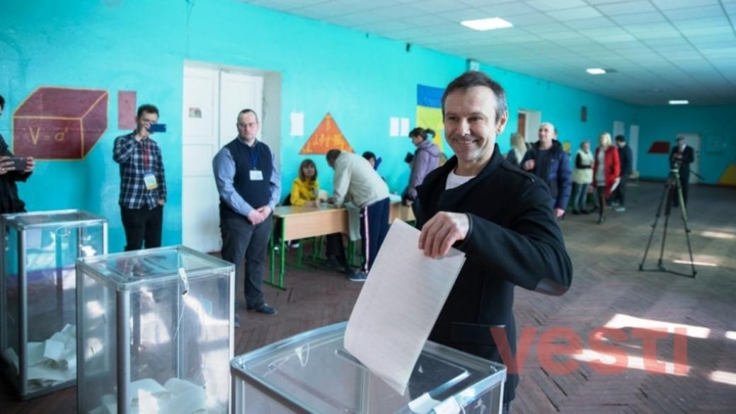 Украинский музыкант, лидер рок-группы «Океан Эльзы» Святослав Вакарчук сегодня днем проголосовал на выборах президента Украины.