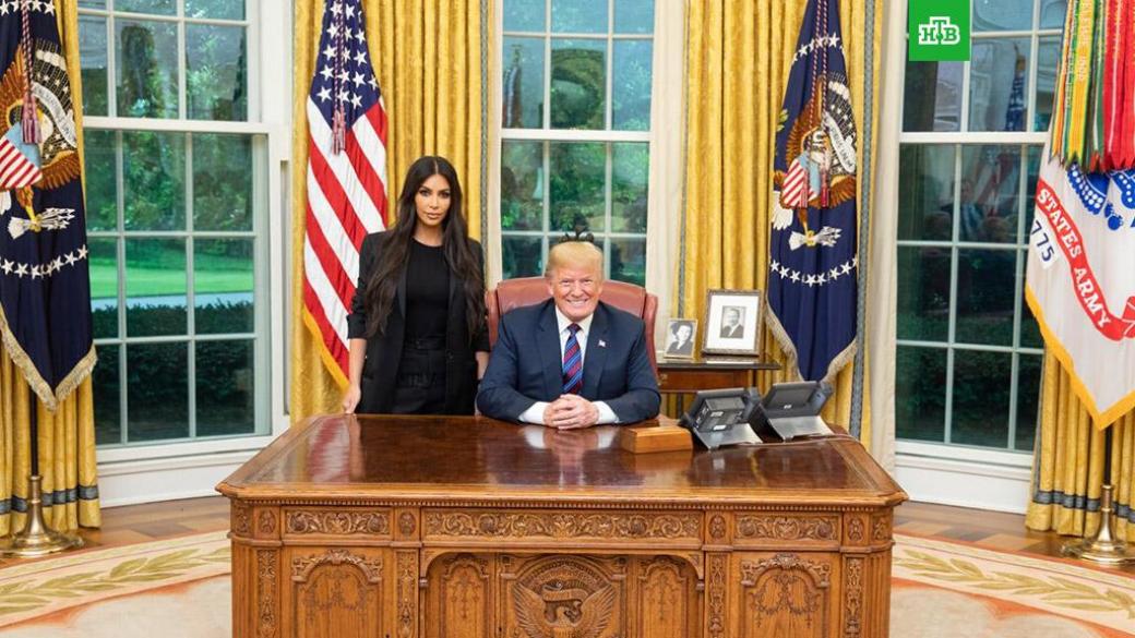 Кардашьян и президент запечатлены в Овальном кабинете. На важные переговоры Ким пришла в сдержанном, но привлекательном образе: модель выбрала черный брючный костюм «оверсайз» и закрытый топ. Как отметил Дональд Трамп, их разговор со звездой прошел вполне плодотворно.