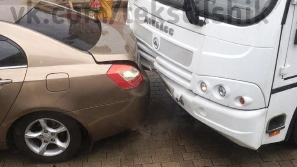 В центре Донецка автомобиль «не разъехался» с маршруткой: появились фото
