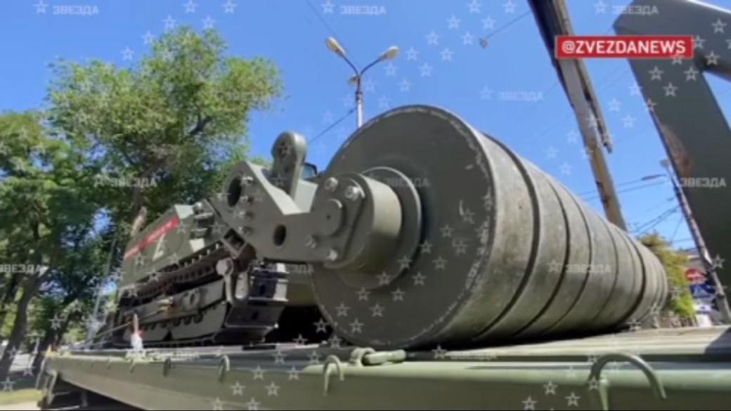 "Лепестки" этот помощник саперов будет давить катком, воодушевленно рассказывает корреспондент.
