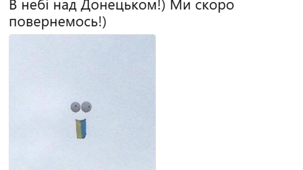 В небе над оккупированным Донецком неизвестные патриоты подняли на воздушных шарах флаг Украины.