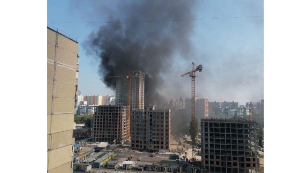 Пожар произошел на строительстве жилого комплекса по адресу улица Бережанская, 15.