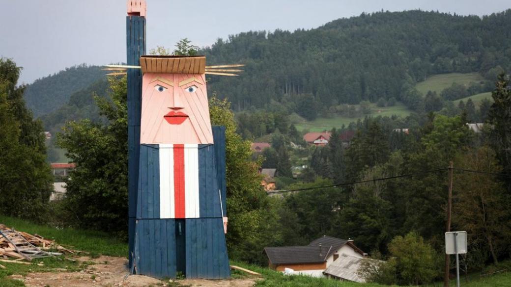В словенском городе Севница установили деревянный памятник не только Мелании Трамп, но и ее мужу — президенту США Дональду Трампу. Об этом сообщает The Washington Post.