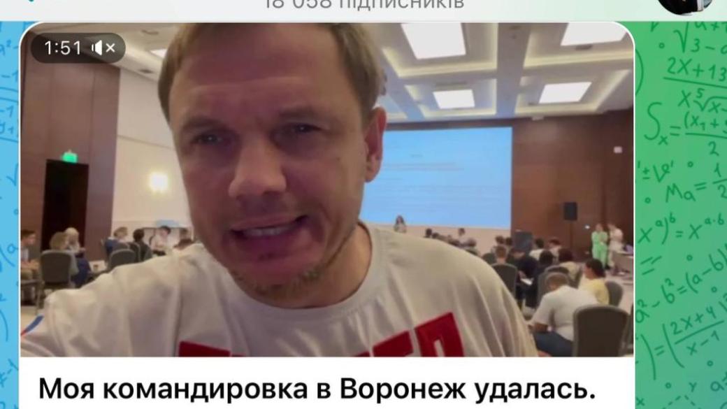 Коллаборант записал видео, в котором заявил, что ездил в Воронеж якобы в командировку, на 1 день на некий форум.