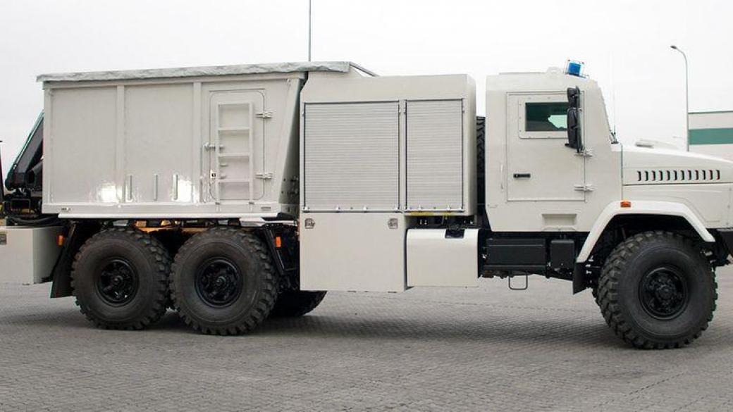 КрАЗ-6322 ПМ-В предназначео для оперативного прибытия к месту обнаружения взрывоопасных предметов, перевозка специального имущества, снаряжения, взрывчатых веществ и средств подрыва.