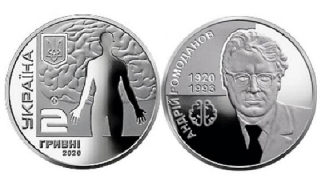 Монета номиналом 2 гривни посвященна выдающемуся ученому, общественному деятелю, педагогу, основателю нейрохирургической школы в Украине, доктору медицинских наук, профессору, академику НАН Украины Андрею Ромоданову. Она выполнена из метала нейзильбер, а ее диаметр 31 миллиметр. Тираж памятной монты- 30 тысяч единиц.