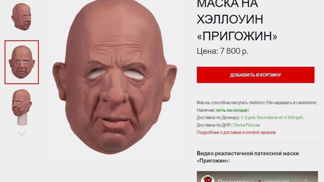 Так интернет-магазины в оккупированном Донецке рекламируют "реальную латексную маску " Пригожина для празднования Хэллоуина.