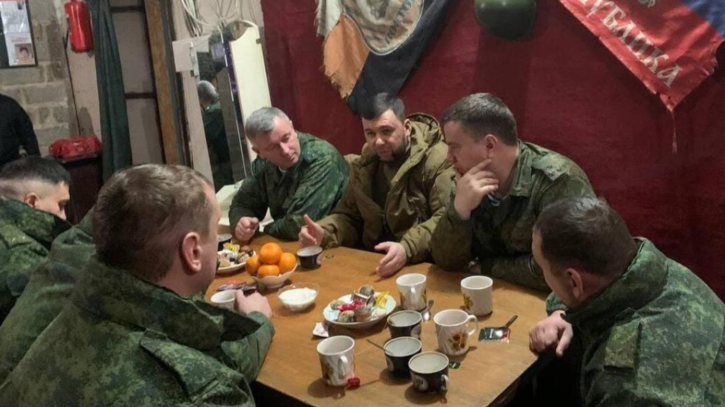 Так называемый «глава ДНР» Денис Пушилин в преддверии Нового года посетил передовые позиции подразделений НВФ, где поздравил членов НВФ «народной милиции» с наступающим праздником. Об этом сообщают паблики ОРДО.