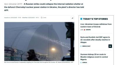 Существует риск того, что саркофаг Чернобыльской АЭС может обрушиться в случае нового удара россиян. Для этого даже не обязательно прямое попадание в защитное сооружение. Об этом заявил директор Чернобыльской АЭС Сергей Тараканов, сообщает РБК-Украина со ссылкой на France24.