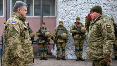 Президент Украины Петр Порошенко сегодня в ходе визита на Донбасс пообщался с бойцами ВСУ и озвучил масштабы российского вооружения на границе с Украиной. Об этом он заявил во время встречи с военнослужащими 72-й механизированной бригады, выполняющими задания в зоне проведения ООС.