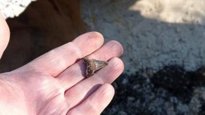 Сотрудник Малой академии наук Евгений Пащенко нашел зуб ископаемой акулы в возрасте около 50 млн. лет (палеоген).