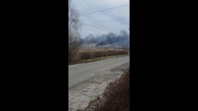 Украинские бойцы показали колонну уничтоженной техники противника под Гостомелем.