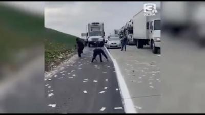 Сообщается, что в этом районе прорвало трубу, и при минусовой температуре дорога быстро покрылась льдом.