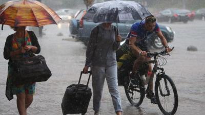 Первый с конца июня ливень в Москве залил несколько улиц. Об этом пишут в соцсетях.