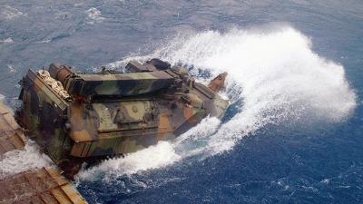 На военной базе в Калифорнии во время проведения учебно-тренировочных мероприятий загорелся танк-амфибия.