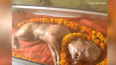 В Индии умерший теленок с человеческим лицом стал идолом для поклонения