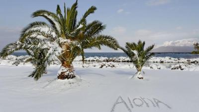 За несколько дней на Гавайях выпало рекордное количество снега и в некоторых местах толщина снежного покрова достигает 90 сантиметров.