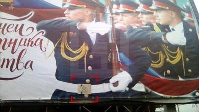 В российском городе Новороссийске к 23 февраля установили билборд с поздравлениями в честь праздника «День защитника Отечества», на котором по ошибке были изображены украинские военные.