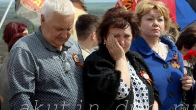 Родители первого «главы» ОРДО Александра Захарченко посетили сегодня, 8 мая, мероприятие на Саур-Могиле. Тамара и Виктор Захарченко были среди других участников акции.