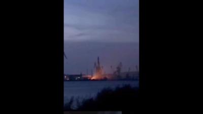 Местные говорят, что попадание было также в недостроенный корабль. Сейчас из сухого дока уходит много дыма, туда спешат пожарные машины.