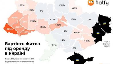 Интересная инфографика стоимости аренды жилья в Украине, пишут украинские ТГ-каналы: