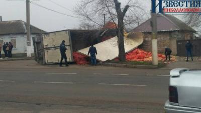 В Николаеве тягач с тоннами лука протаранил дом.