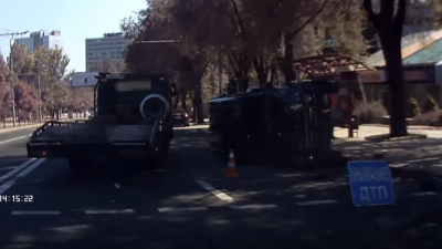 Сегодня в оккупированном Донецке на пересечении проспекта Титова и улицы Артема произошло ДТП с участием «Мерседеса Гелендвагена», который от удара с автомобилем «Лада Калина» перевернулся на боковую сторону.