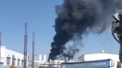 «Со стороны Украины»: Россияне опубликовали видео, где видно, что перед взрывом на нефтеперерабатывающем заводе, сегодня утром, пролетал беспилотник.