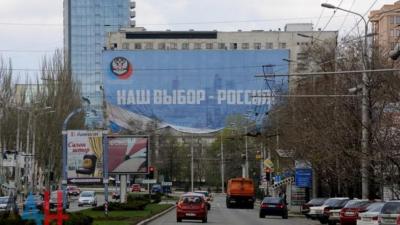 В Донецке убрали самый большой баннер «Наш выбор — Россия»