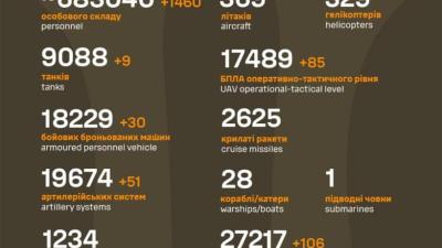 За минувшие сутки ВСУ ликвидировали 1 460 оккупантов и практически 300 единиц вражеской техники.