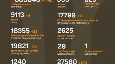 За минувшие сутки Силы обороны ликвидировали 1 440 оккупантов и более 200 единиц техники врага.