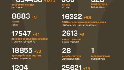 Силы обороны ликвидировали 1370 оккупантов и уничтожили более 260 единиц вражеской техники.