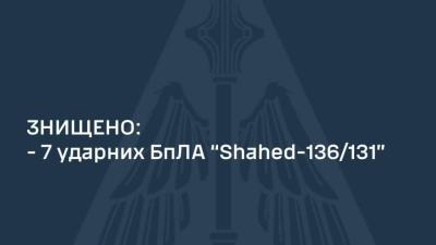 Этой ночью ВВС ВСУ уничтожили семь из десяти «шахедов», которыми Россия атаковала Украину