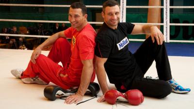 Скульптура с изображением прославленных украинских боксеров, братьев Кличко, появилась в парке города Коростышеве Житомирской области.