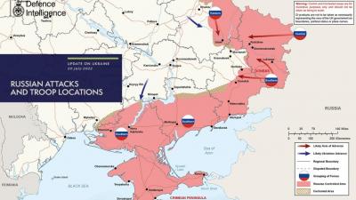 По мнению британского Министерства обороны, наступательные операции РФ по-прежнему ограничены по масштабу, боевые действия к западу от Лисичанска сосредоточены на Северске и Бахмуте.
