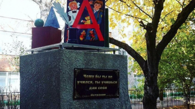 В городе Буденновске возле одной из школ поставили новый памятник букварю.